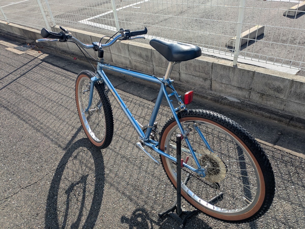店頭展示品を購入後、前後ハブのオーバーホール、各所注油し、チューブとタイヤを新品にして室内にて保管しておりました。