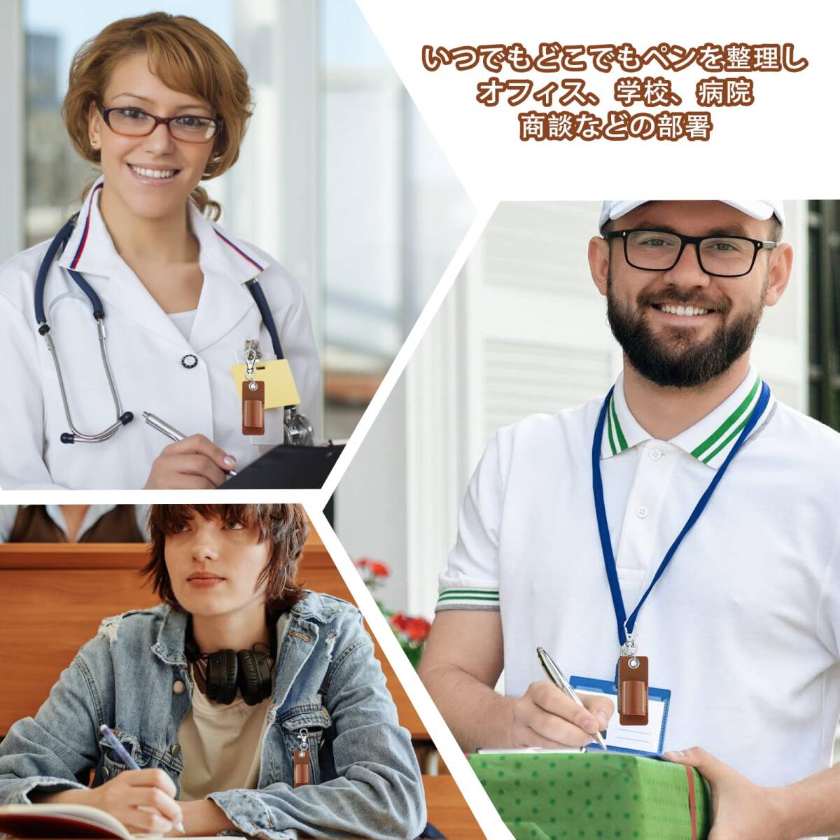 ペンホルダー ストラップ 1個 ブラウン PUレザー メタルクリップ付き 首掛け 紛失防止 ペン収納 筆差し ボールペン 鉛筆対応 省スペース 整理収納 ビジネス 看護師 学生用 携帯便利