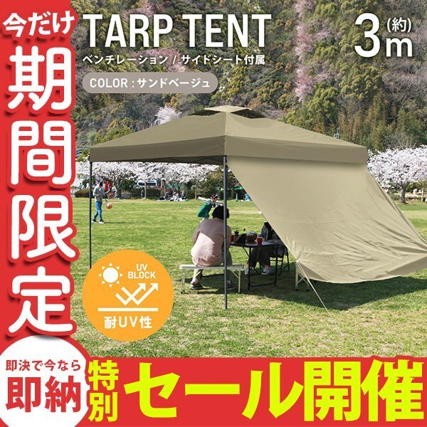 | 強い日差しでもこの3m×3mのタープテントは快適な日陰を作ってくれます! |
