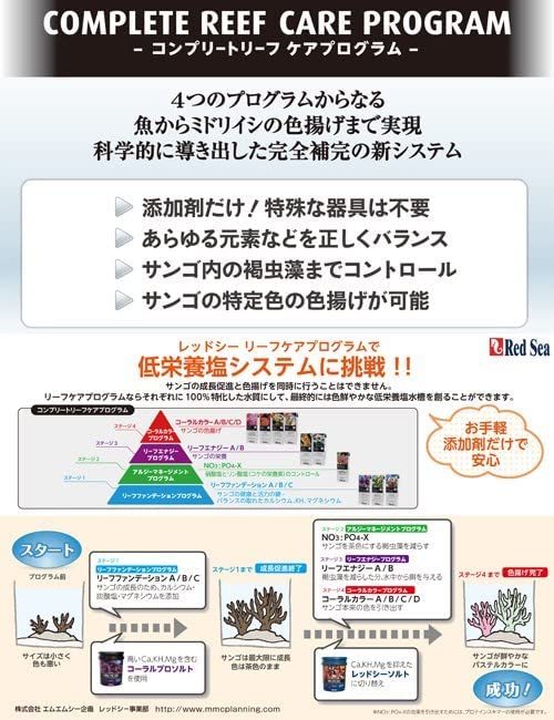 サンゴを最大限に成長させることが目的の場合、コーラルプロソルトと当社のリーフケアレシピを併用することで、自然に比べ最大4 倍の成長速度に促進できます。コーラルプロソルトの アルカリ度は12 dKHとなっており、ミックスドリーフやSPS フラグ水槽に最適です。さらに、水溶性を高めた新処方により、溶解から水槽投入まで約20分にまで短縮でき、溶解作業への利便性が格段に向上しています。