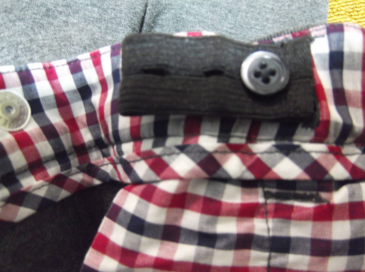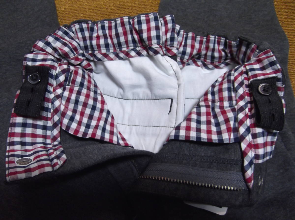 ウエスト内側がチェックでお洒落、サイズ調節機能付きなので、長く着られます。