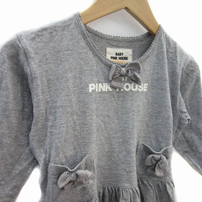 ベビーピンクハウス BABY PINK HOUSE ワンピース 長袖 ラウンドネック ロゴプリント リボン S 100cm グレー /MA9 女の子 キッズ