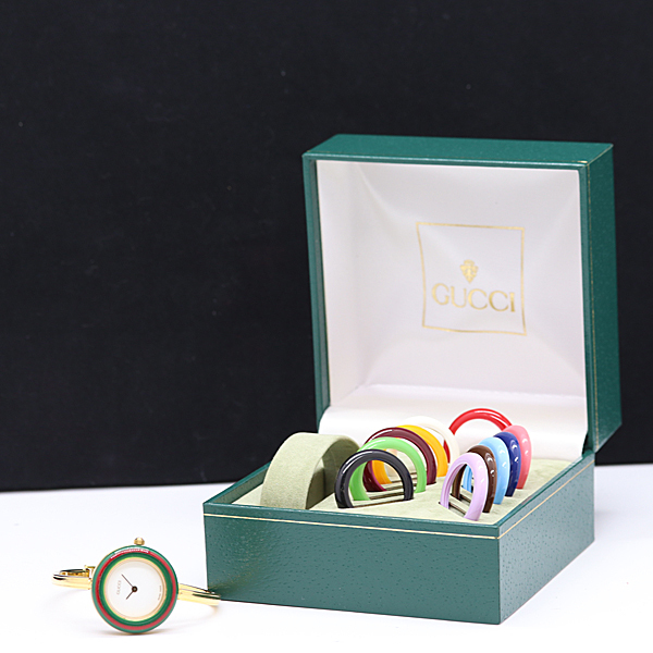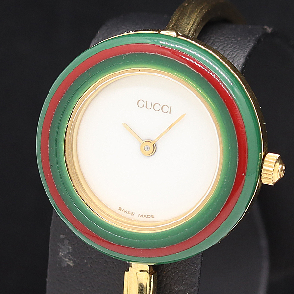 1円 箱付 稼働 グッチ チェンジベゼル 11/12.2 QZ ホワイト文字盤 レディース腕時計 0037400 11BJT IGR