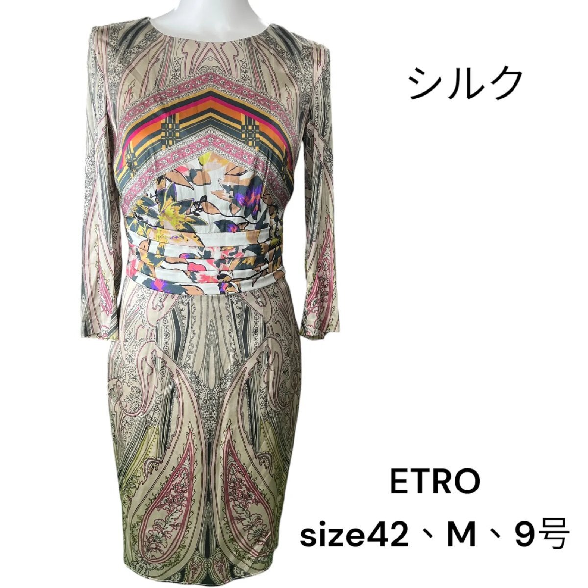 美品 エトロ ETRO 美しい総柄 シルク ワンピース 42、M、9号 レディース 中古 S5N235