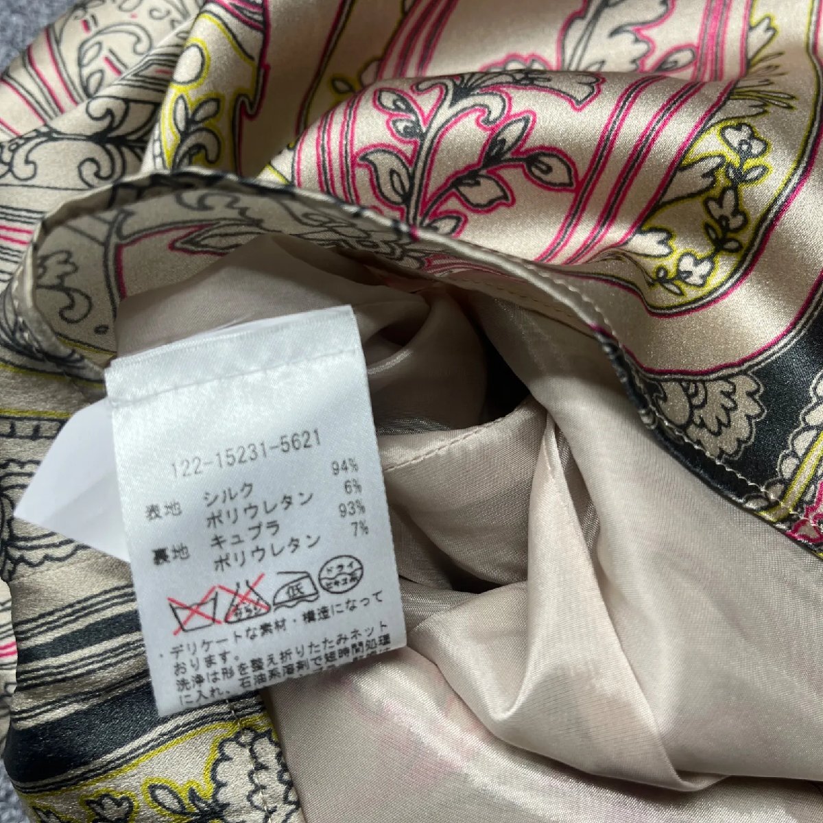 【素材】シルク94、ポリウレタン6。裏地キュプラ、ポリウレタン。
