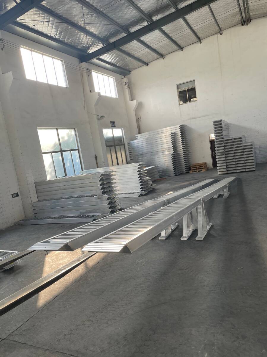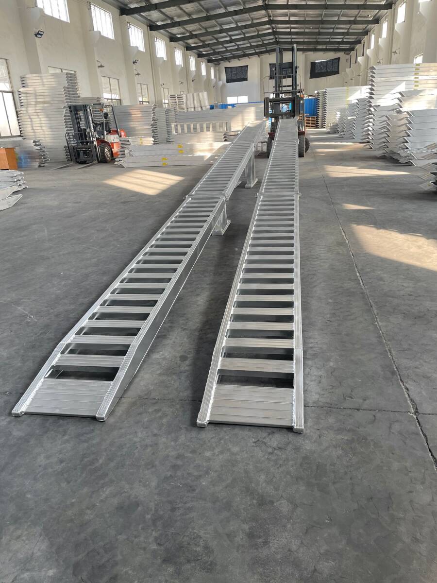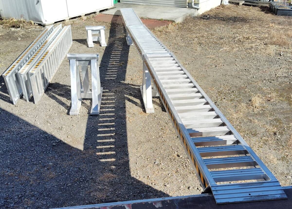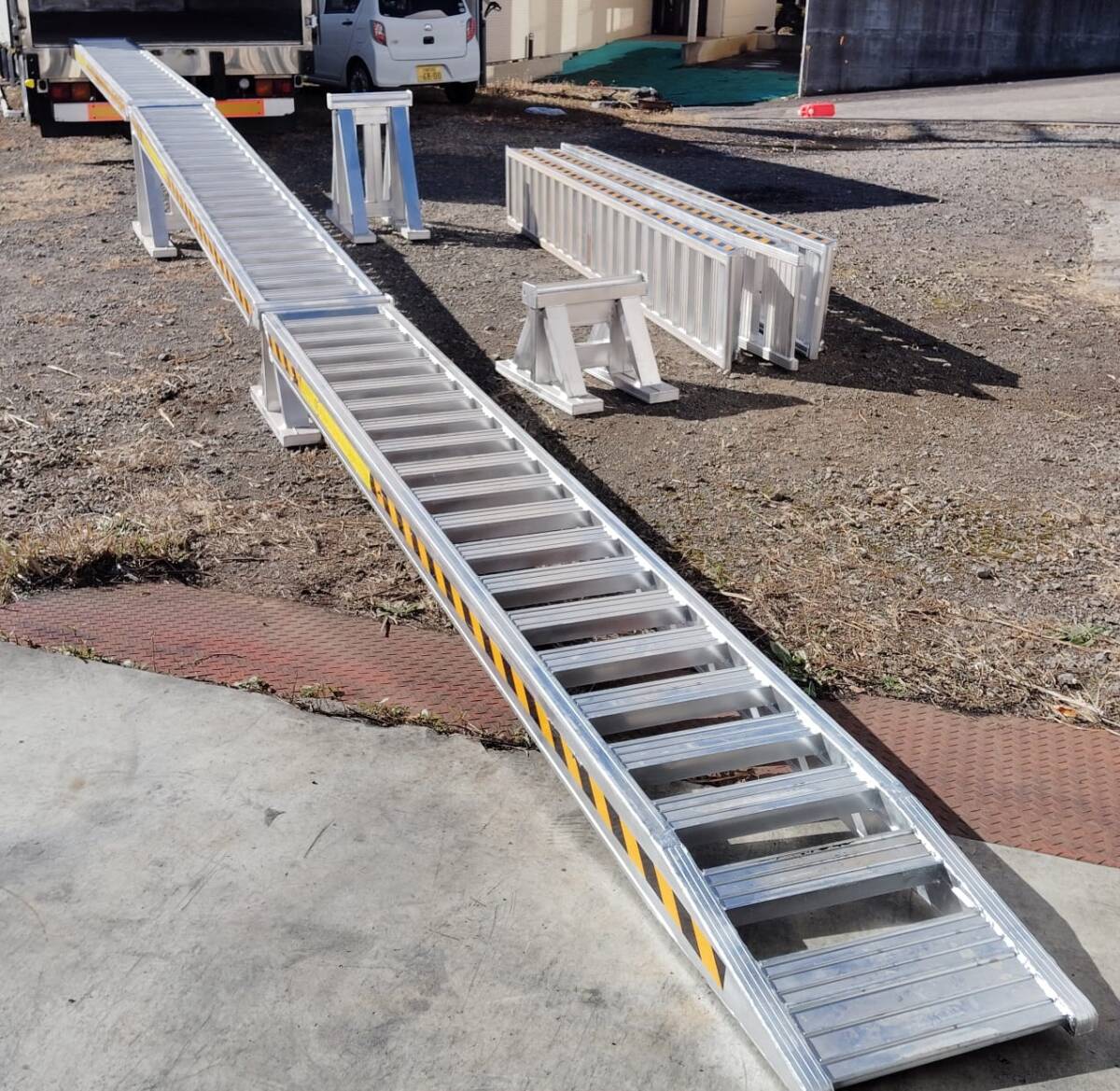 このアルミブリッジは購入後、ユンボの荷下ろしに 8m構成で一度使用したのみで、それ以外は未使用 です。