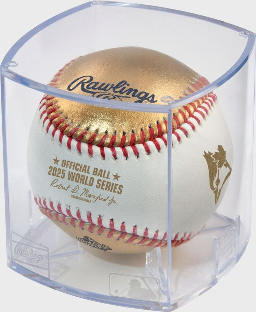 *ボールには、2025年シーズンのナショナルリーグ王者Los Angeles Dodgersとアメリカンリーグ王者Toronto Blue Jays の両チームのロゴがプリントされています。 また、通常の白いベースボールではなく「白/ゴールド」の特別仕様で、“ゴールド”カラーが施されており、2025年ワールドシリーズを祝う記念アイテムとしてのデザインになっています。
