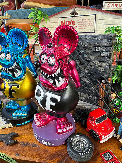 ホットロッドカルチャーを黎明期から牽引してきたキャラなので、アメ車のミニカーと一緒に飾るのも、思い切りハマリますよ!