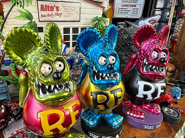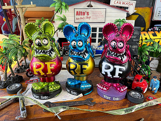 カスタム界の神様エド・ロスが生み出したカリスマキャラ、「ラットフィンク」が、ズラッとカラフルに勢揃いしました!