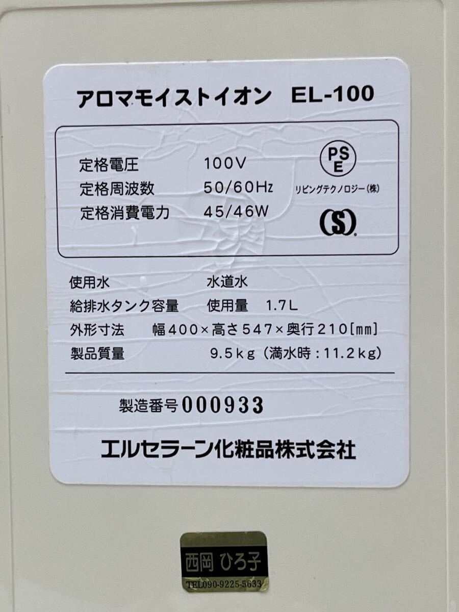 U011469 エルセラーン Aromamoist Ion アロマモイストイオン EL-100 保湿 加湿 ミスト 通電確認済み 現状品 1202