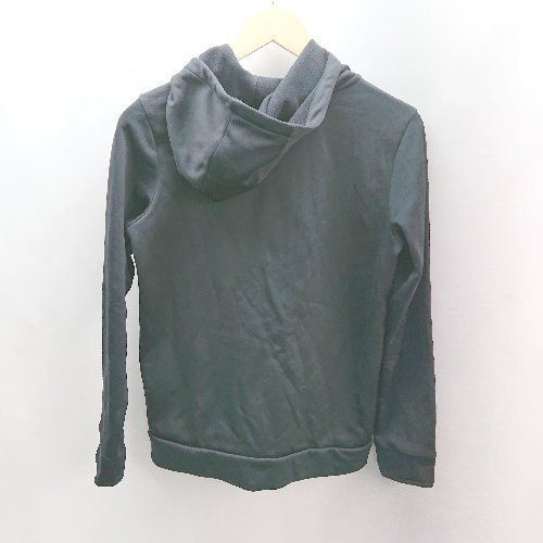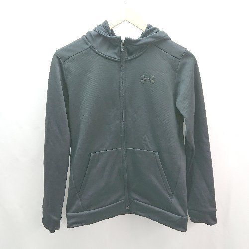◇ UNDER ARMOUR フーディー ワンポイント 裏起毛 ジップアップ シンプル 長袖 パーカー サイズ160 ブラック レディース E