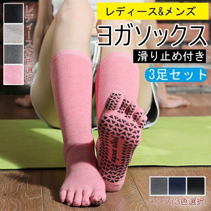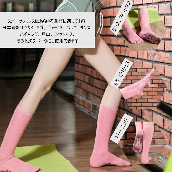 ヨガソックスコットンロングチュー スポーツソックス サッカーソックス 耐久性 滑り止め加工 抗菌防臭 3足セット☆6色選択/1点