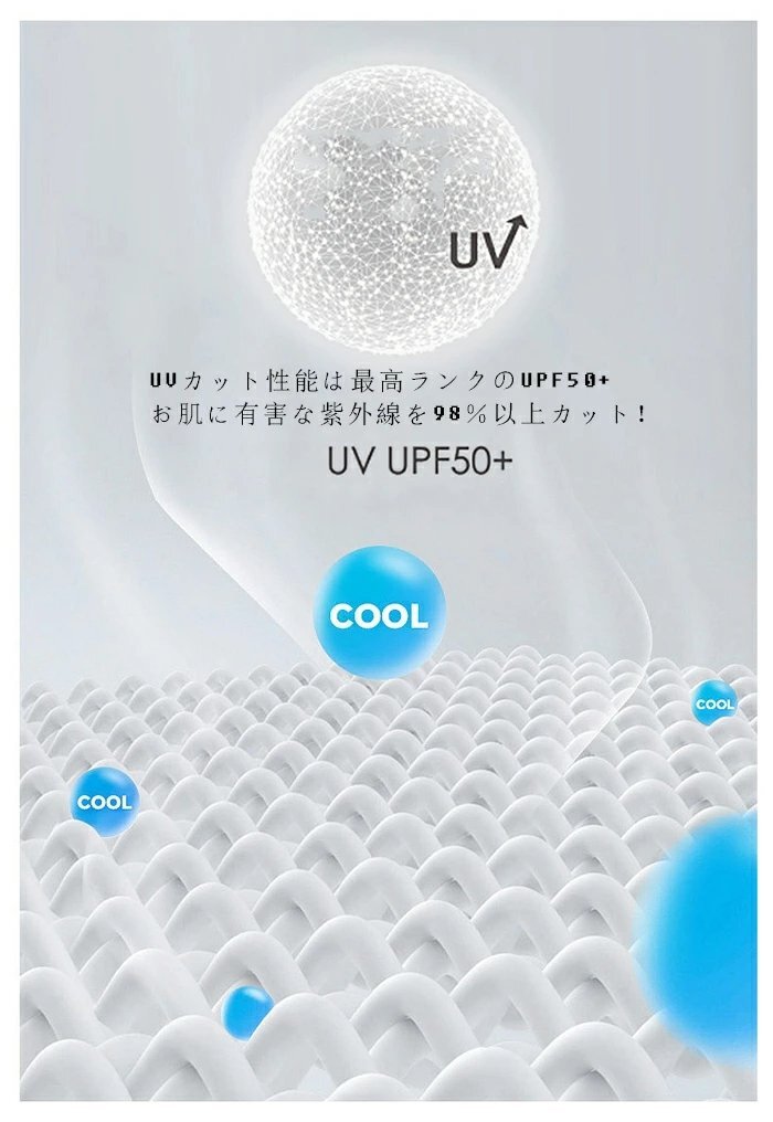 UVカット性能は最高ランクのUPF50+ お肌に有害な紫外線を98%以上カット!軽量、小さく折りたたんで収納いただけます。 サラサラして肌触り良く速乾性を感じる、UVカット効果抜群。