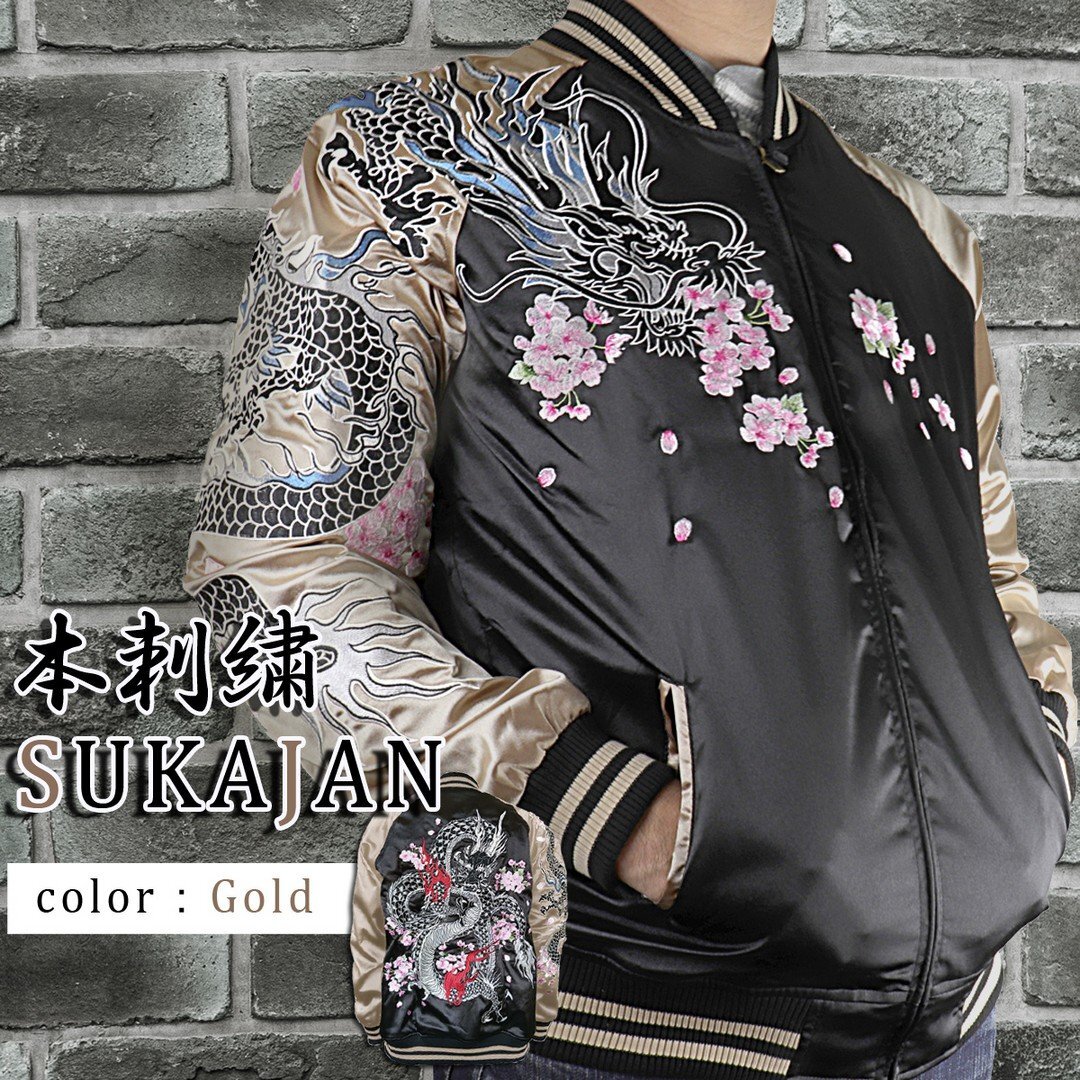 【CTskjnMGL】送料無料 スカジャン ゴールドベージュ サイズ:M 龍 桜吹雪