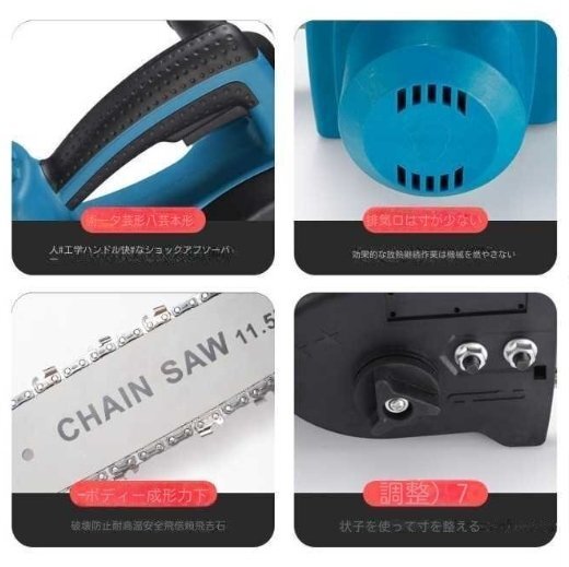 旧の商品に比べ、ガイドバー12インチになり、チェーンスピードは10M/Sに達し、直径約300mmまでの丸太や木材などの切断が可能、切れ味はバッチリ!それに、コードレス・充電式とわずか3.5kgの重さ(バッテリー含み)で女性でも簡単に操作・自由に使用できます。