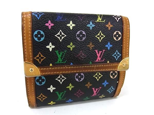 1円 LOUIS VUITTON ルイヴィトン M92984 モノグラムマルチカラー ポルトフォイユ エリーズ 二つ折り 財布 ウォレット ブラック系 FV4356