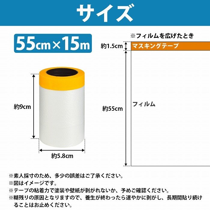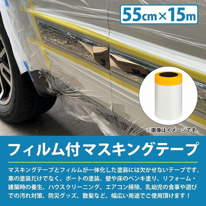 【送料380円】1本『長さ15m×幅55CM』フィルム付 マスキングテープ 板金 塗装用 養生 保護 フィルム テープ 塗装 マスキング シール付き