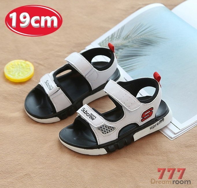 kids 滑り止め付き!ポイントロゴ スポーティー サンダル 【ホワイト 19cm】 韓国子供服 キッズ ビーチサンダル 子供用 女の子
