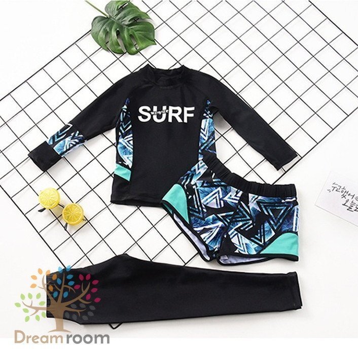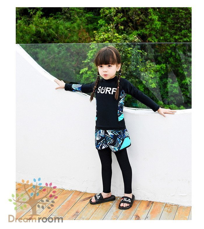 kids 3点セット エスニック柄 ラッシュガード+海水パンツ+レギンス セットアップ女の子 【100cm】 K-235 水着 子供用 スイムウェアー