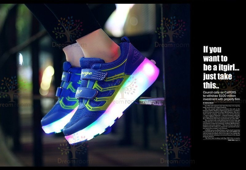 光る☆LED ライトアップスニーカー&ローラーシューズ 一体型 【K-373ブルー 22.5cm】夜間 スケート靴 反射材 ジョギング 自転車