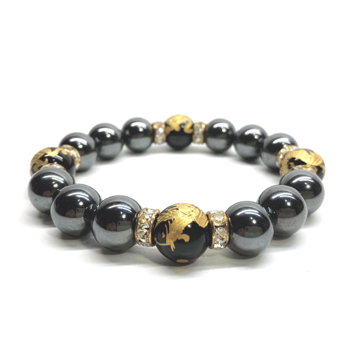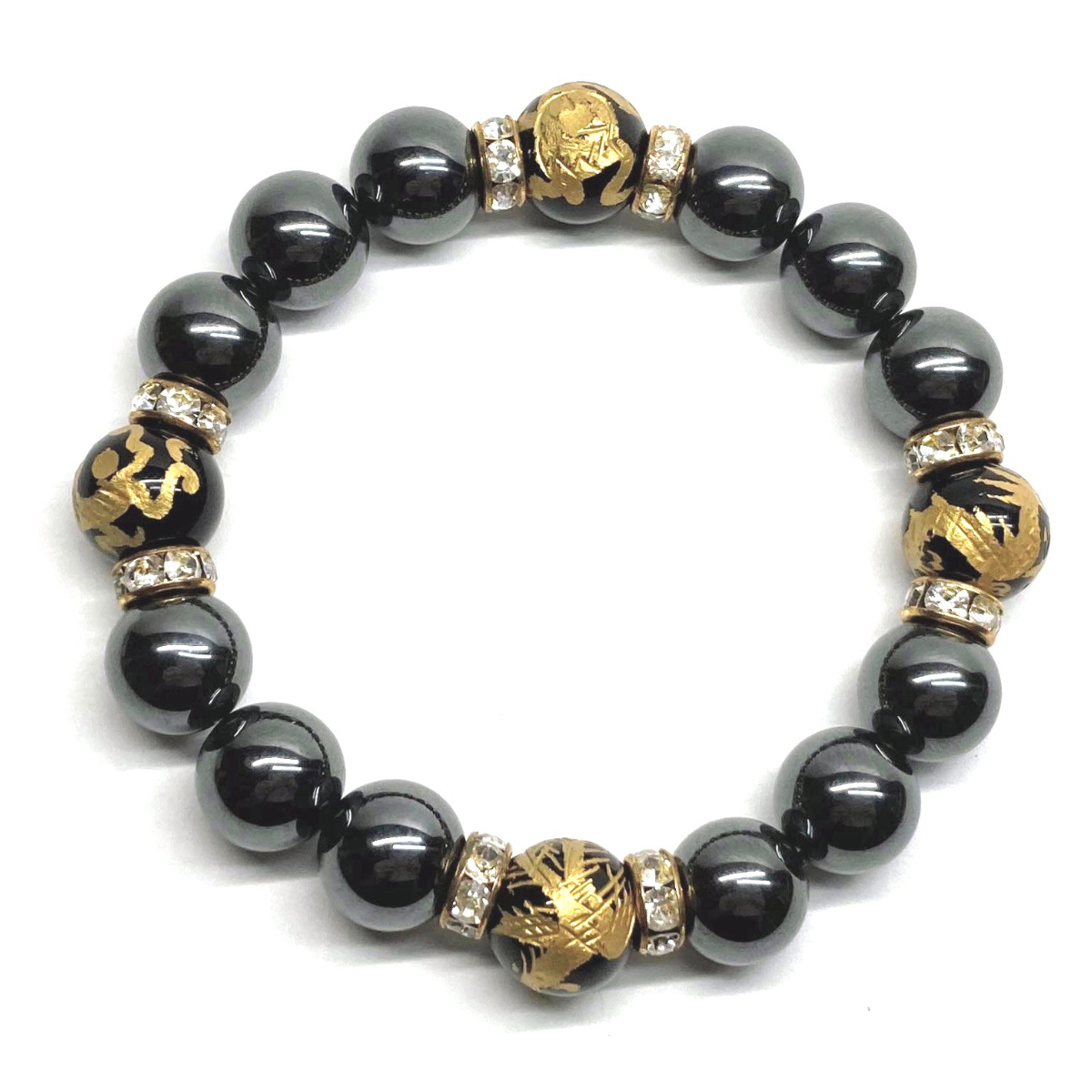 四神獣金彫オニキス×ヘマタイト 12mm パワーストーン ブレスレット天然石 青龍 白虎 玄武 朱雀 運気上昇 開運 金運 お守り 四神相応 G