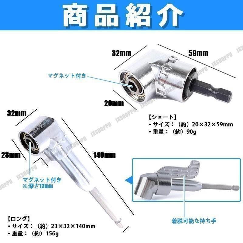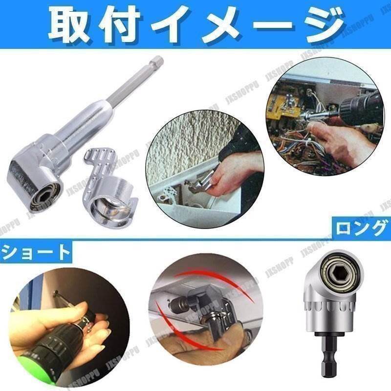 送料0円 電動ドライバー用 L型 [ショート] フレキシブルシャフト付き 6.35 (1/4) アダプタ 六角軸 ドリル 変換 105度 アタッチメント 角