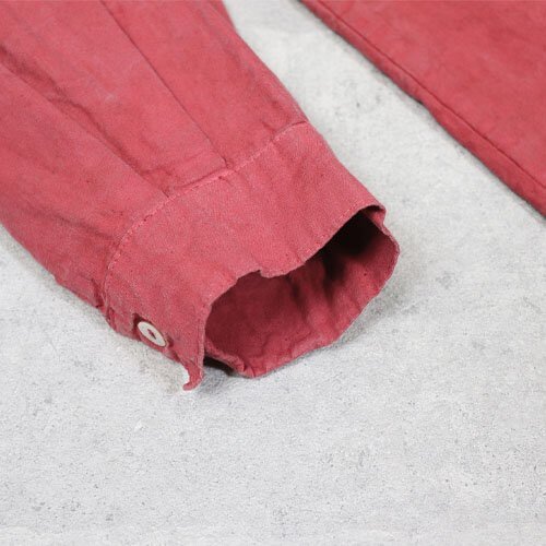 ブルガリア軍タイプのグランパシャツです。生成りのコットン生地にピグメントダイ加工を施した味のある逸品です。 通常の後染め加工よりも手間のかかる分初めからいい感じの味のある風合いが得られるのがピグメントダイです。はじめのうちは色写りし易いので白いパンツやバックにはご注意ください。 サイズ1(M)で着丈71cm、身幅66cm、肩幅50cm、袖60cm程度です。染加工品につき若干サイズのばらつきが出ますことご了承ください。 沖縄離島を除く全国500円でお送りいたします、落札価格にプラスでお願いいたします。