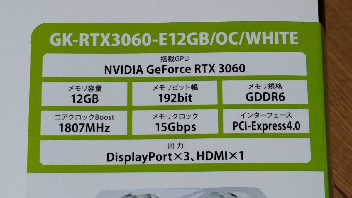 玄人志向 NVIDIA GeForce RTX3060 搭載 グラフィックボード GDDR6 12GB GALAKURO GAMINGシリーズ GK-RTX3060-E12GB/OC/WHITE