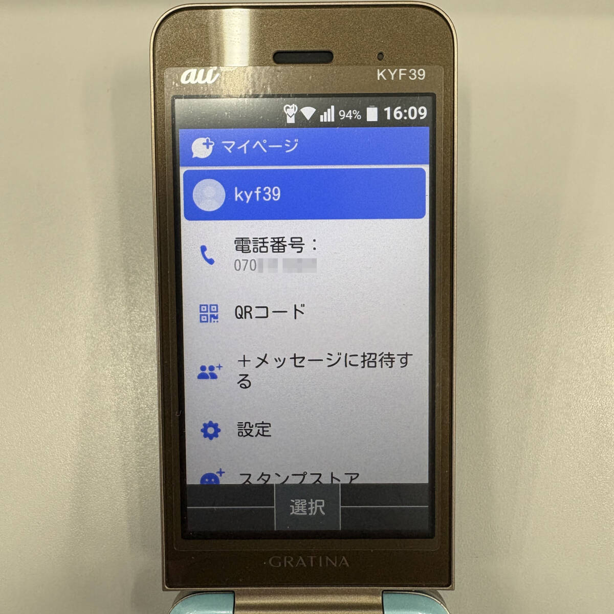 京セラ製のau向け携帯電話 (ガラケー / ガラホ)の、GRATINA KYF39 です。