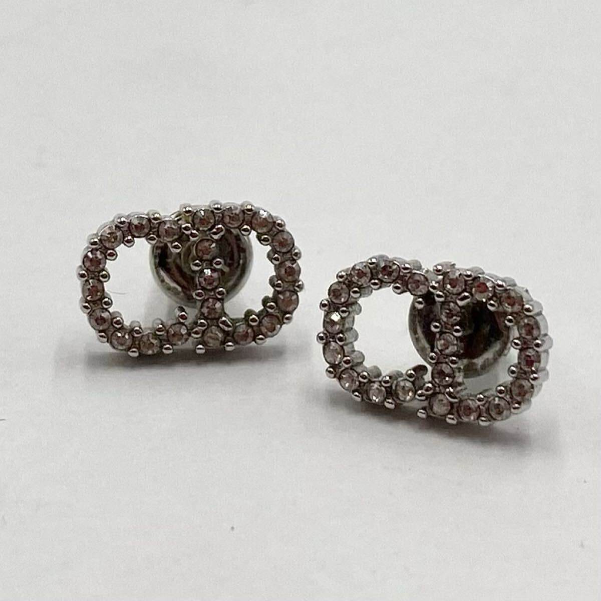 ・ChristianDior/クリスチャンルディオール ラインストーン CDロゴ ピアス シルバーカラー アクセサリー