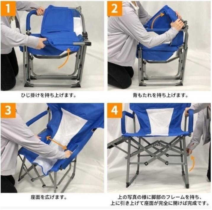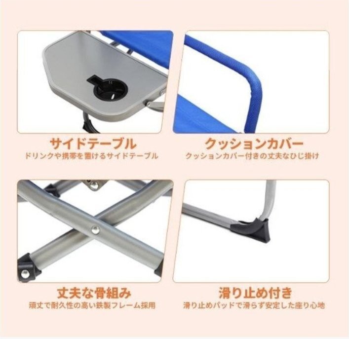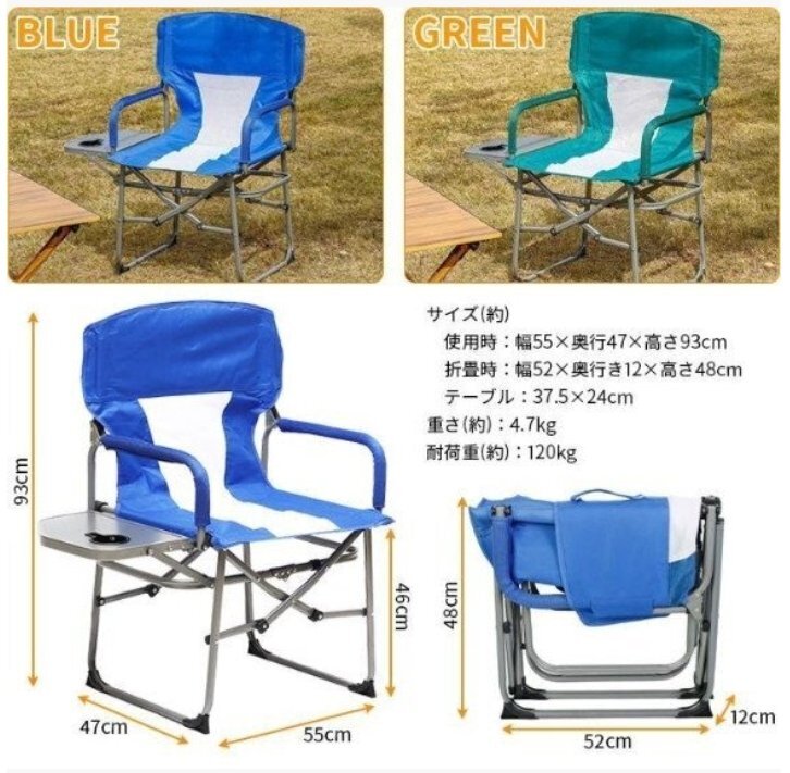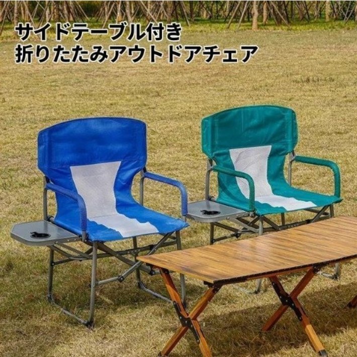 サイドテーブル付き 折りたたみ アウトドア チェア キャンプ 椅子 耐荷重 120kg テーブル付き 軽量 折りたたみチェア ブルー