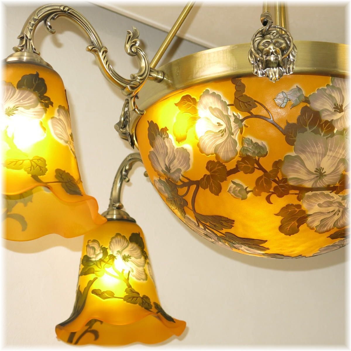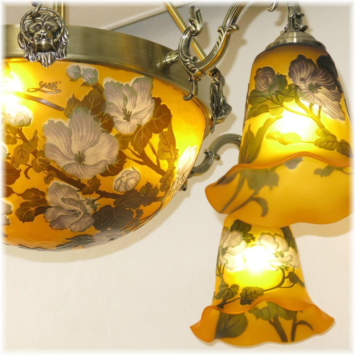 | 商品説明 | ![]() 【送料無料!】☆豪華ガラス工芸☆新品 アールヌーボー 様式 ガレ風 ガラス工芸アンティークシャンデリア ☆広角LED7灯(\9000-相当)をお付けいたしまして驚きのプライス! エミール・ガレの名はアール・ヌーボーの代表的な担い手として一躍有名になり 彼の様々な技法を駆使して生み出される神秘的なガラス工芸品の数々は美術的に高く評価されました それらの技法は熟練した職人の手により今日に受け継がれ ガレ風の作品として、すべて手作りで作り続けられています。 今回のシャンデリアはそのなかの被せガラス技法で作られた作品です 被せガラスとは何種類もの色ガラスを重ね着させ、その後に表面から彫刻を施し深く彫る事により下の色が現れ変化にとんだ模様を出すことができます 重ね具合や厚さにより同じガラスでもまったく別の雰囲気になります 実物は写真で見るより数段すばらしく インテリアとしての色調と電気をつけたときのうっとりするような美しい色調の両方をご堪能いただけます この機会に高級感あふれるガラス工芸シャンデリアはいかがですか、お部屋のムードが一変します。 大手家具メーカー・専門量販店等で数十万で販売されているシャンデリアと同等の商品です シャンデリア本体は調光にも対応しており調光スイッチでお好みの明るさに調整可能です♪ ※調光が必要の場合調光対応LED(1個¥200-アップ)と汎用調光器(パナソニック製推奨)が必要です サイズ 直径約100センチ 天井より下に最短約60センチ 重量約8~9キロ 取り付けに関しましては引掛けシーリングに対応しております 付属電球・・・口金E26広角LED暖色3個&口金E17広角LED暖色4個(明るさ40ワット消費電力4ワット¥9000-相当) 白色LED・調光対応LEDがご希望の場合落札後お申しつけ下さい 商品画像は暖色LEDを装着し撮影しております ![]() |