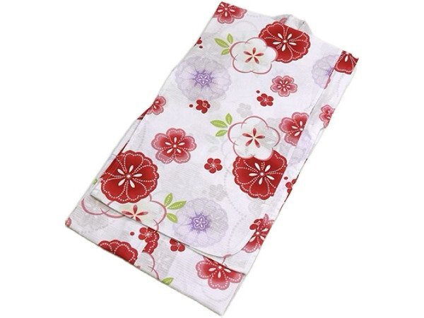 白系に伝統柄の桜と梅、とっても可愛いお子様浴衣!