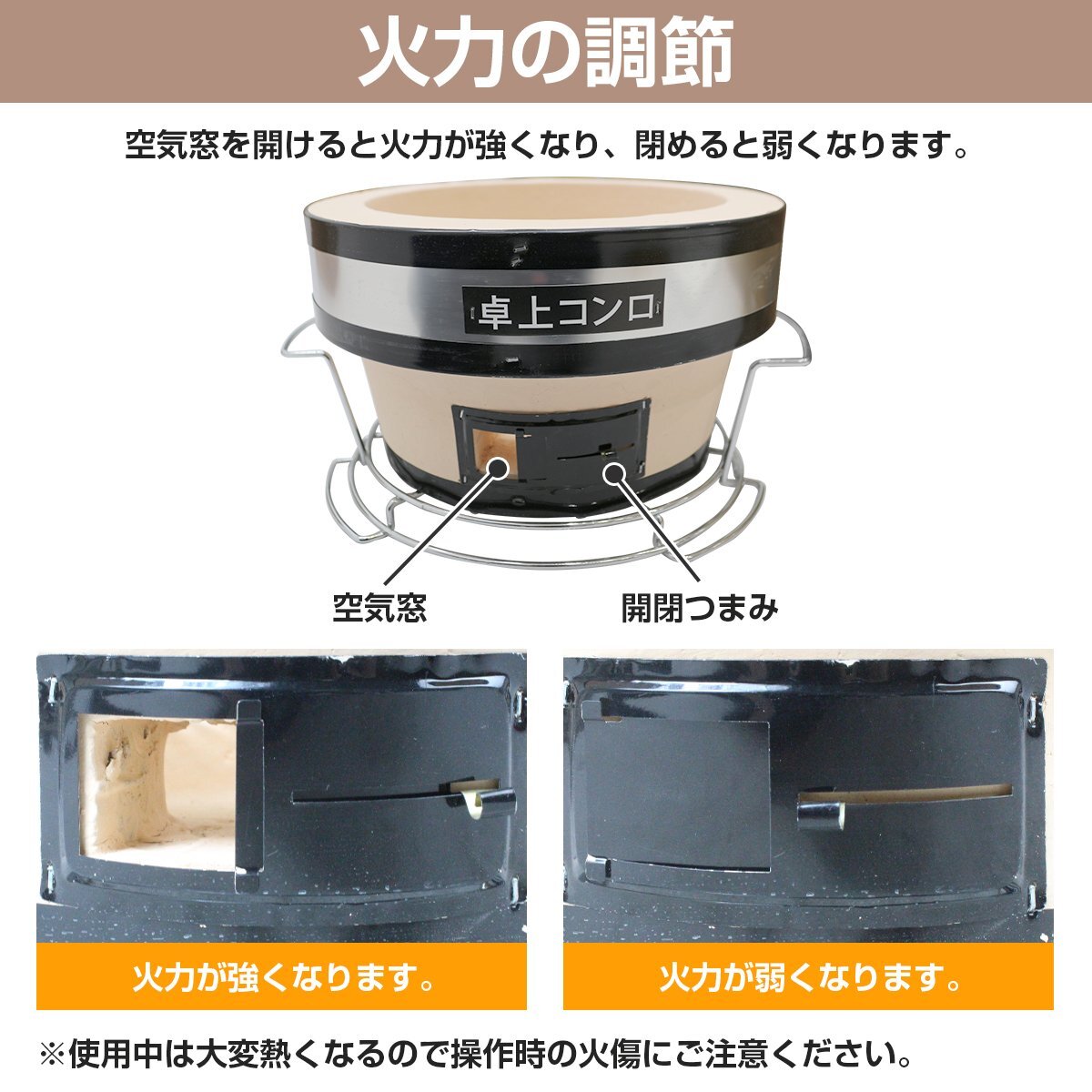 コンパクト 七輪 炭火焼 卓上七輪 卓上コンロ 珪藻土 ミニ七輪 家庭用七輪 小型 丸型 円形 魚焼きグリル 焼肉 BBQ 1人/2人 用