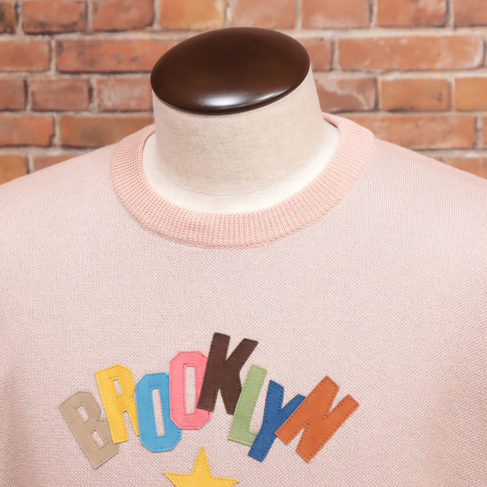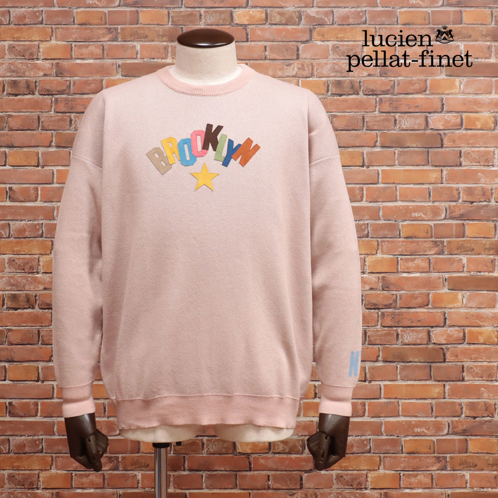 1円/秋冬/lucien pellat-finet/Mサイズ/イタリア製ニット AT3191U 綿100% スエード ワッペン セーター ペラフィネ 新品/ピンク/md145/