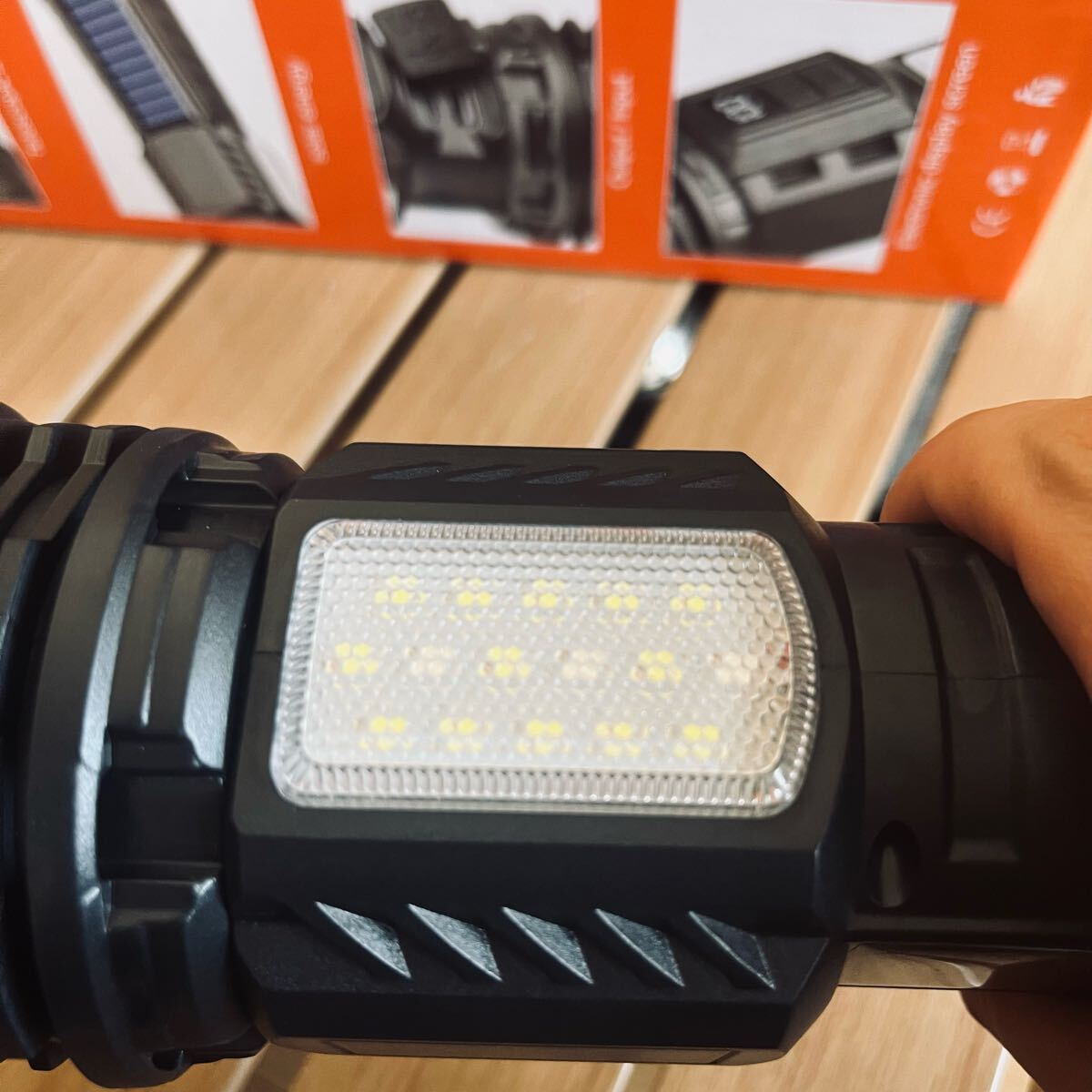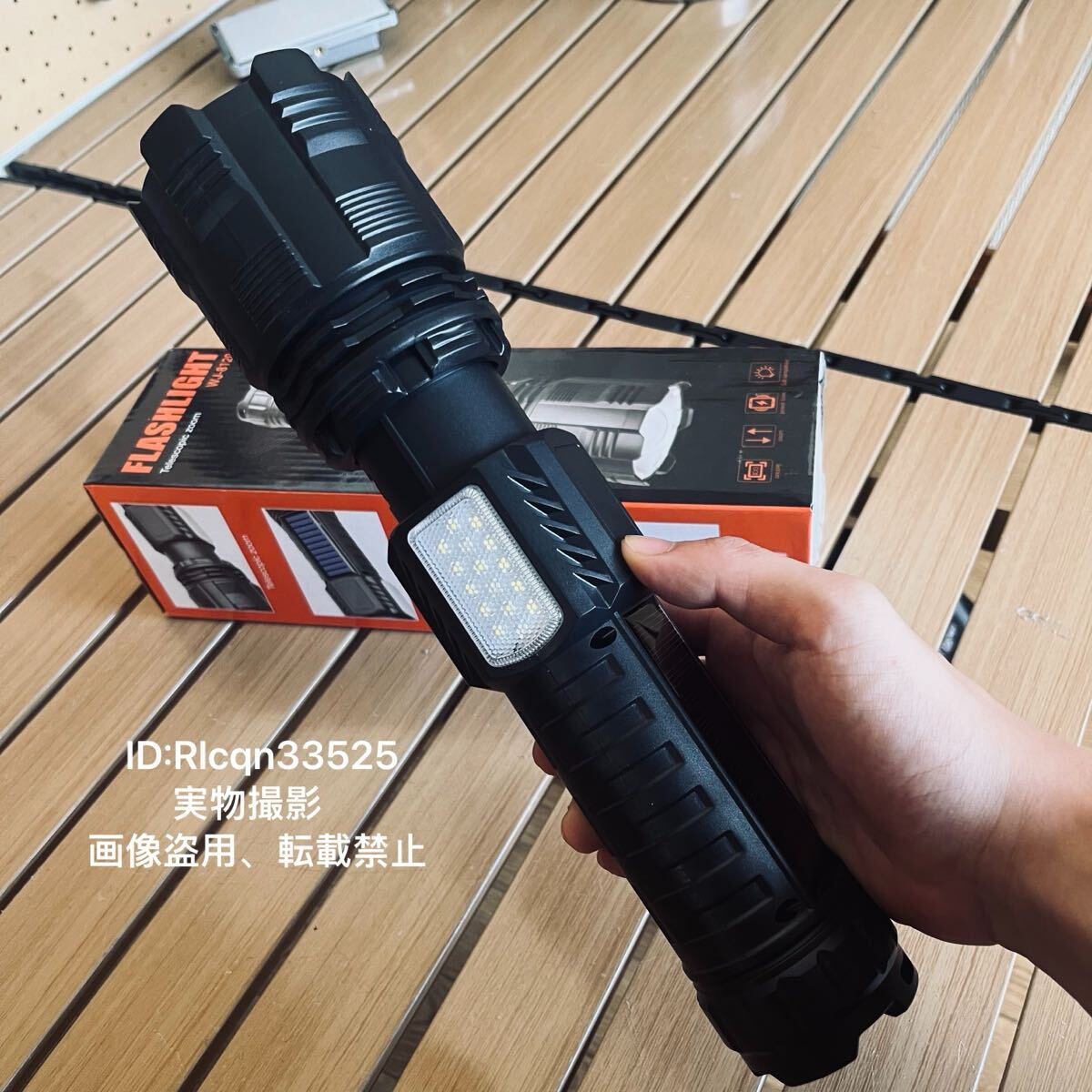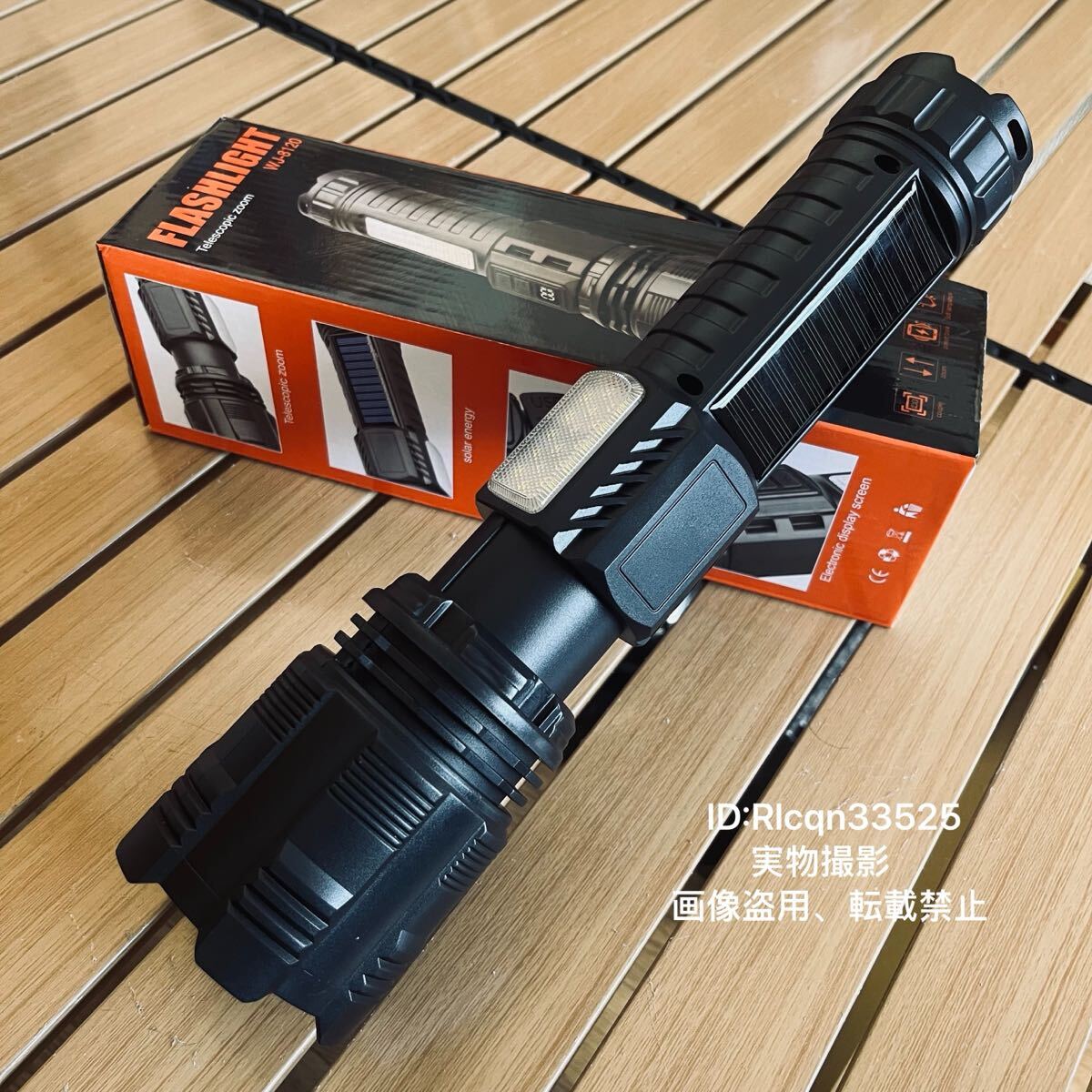 ソーラー充電 超大型レーザーフラッシュライト 懐中電灯 電量表示付き 3000mAh キャンプ 防災 夜間作業 アウトドア 側面ライト搭載