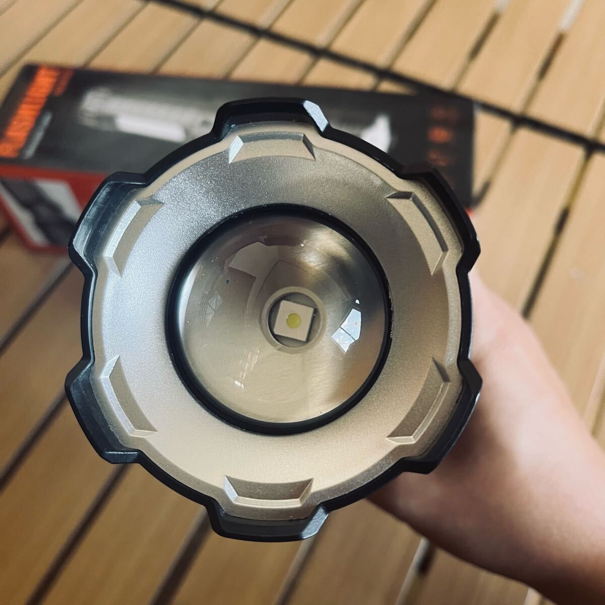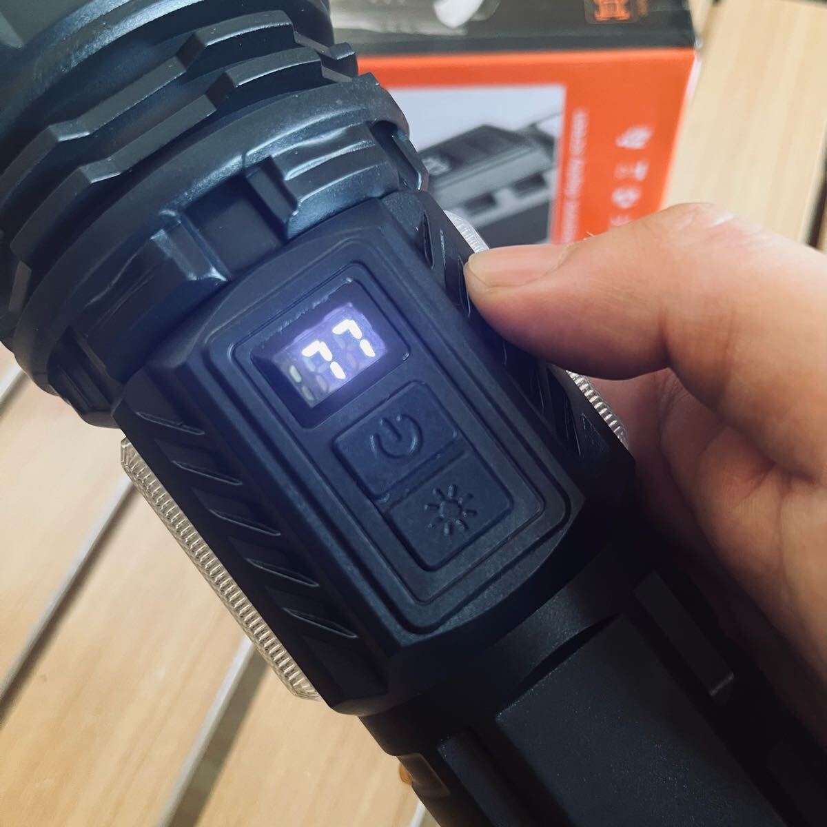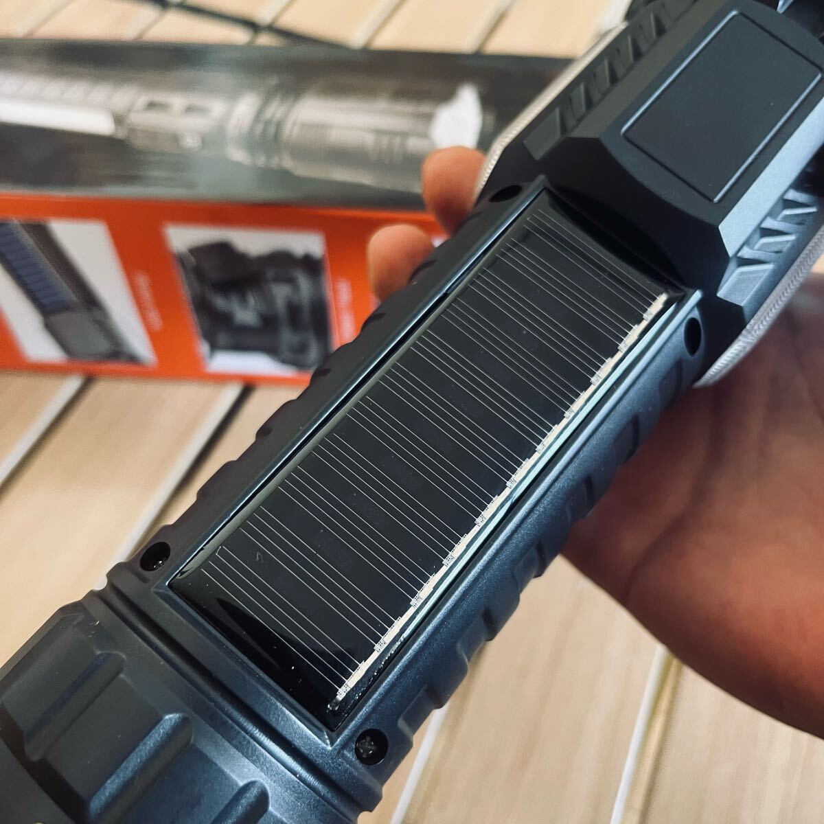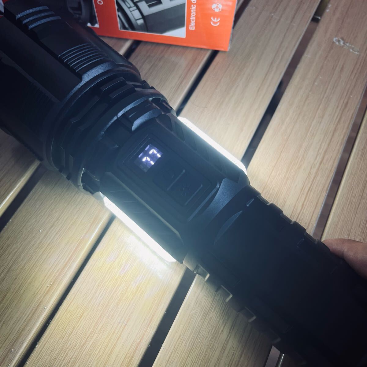 ソーラー充電 超大型レーザーフラッシュライト 懐中電灯 電量表示付き 3000mAh キャンプ 防災 夜間作業 アウトドア 側面ライト搭載