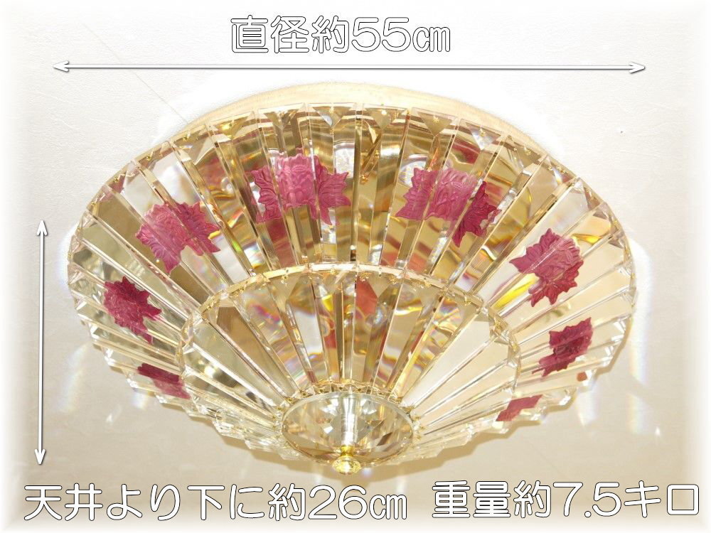 | 商品説明 | ![]() 【送料無料!】★超激安販売★新品・豪華・綺麗なデザイン 薔薇クリスタル LEDシャンデリア ●LEDダウンライトを14灯(¥21000-相当)お付けいたしまして驚きのプライス! ●消費電力わずか70ワットで700ワットの明るさ! ●リモコン操作でさらに省エネ! リモコンも付属しており14灯全灯~8灯~6灯~消灯の切り替えが可能です 新品・綺麗なデザインLEDクリスタルシャンデリア おしゃれなデザインで上質クリスタルを使用いたしました豪華なクリスタルシャンデリアです 14灯のLEDダウンライトがクリスタルガラスを通し光の屈折で光の持つ本来のカラーをかもし出しダイヤモンドのように輝きながらお部屋全体を照らします スタイルは飽きの来ないシンプルなデザインで消灯時もインテリアとして最適です! リモコンも付属しており 14灯全灯~8灯~6灯~消灯の切り替えが可能です リビング・店舗等に最適なゴージャスLEDクリスタルシャンデリアを是非この機会に! 付属電球・・・LEDダウンライト暖色14個(明るさ50ワット消費電力5ワット¥21000-相当) 白色LEDご希望の場合ご注文後お申し付けください 出品画像は暖色LEDを装着し撮影しております 電球の交換に関しましては取り外し可能です ライトコントロールスイッチを使っての調光ご希望の場合は調光対応LED(1個¥200-アップ)が必要です またリモコンとライトコントロールスイッチの併用は出来ません サイズ・直径約55cm 天井より下に約26㎝ 重量約7.5キロです ![]() |