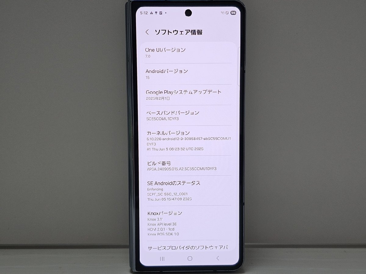 【外装状態】: B メインディスプレイに折り目の線が入っています。サブディスプレイに目立つ傷のない状態です。外装に細かい傷が少しあります。メインディスプレイの縁の上部折り目の部品が少し浮いています。