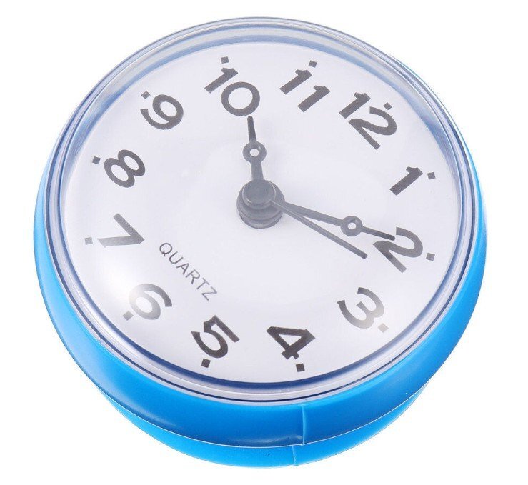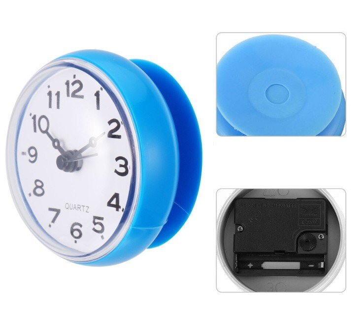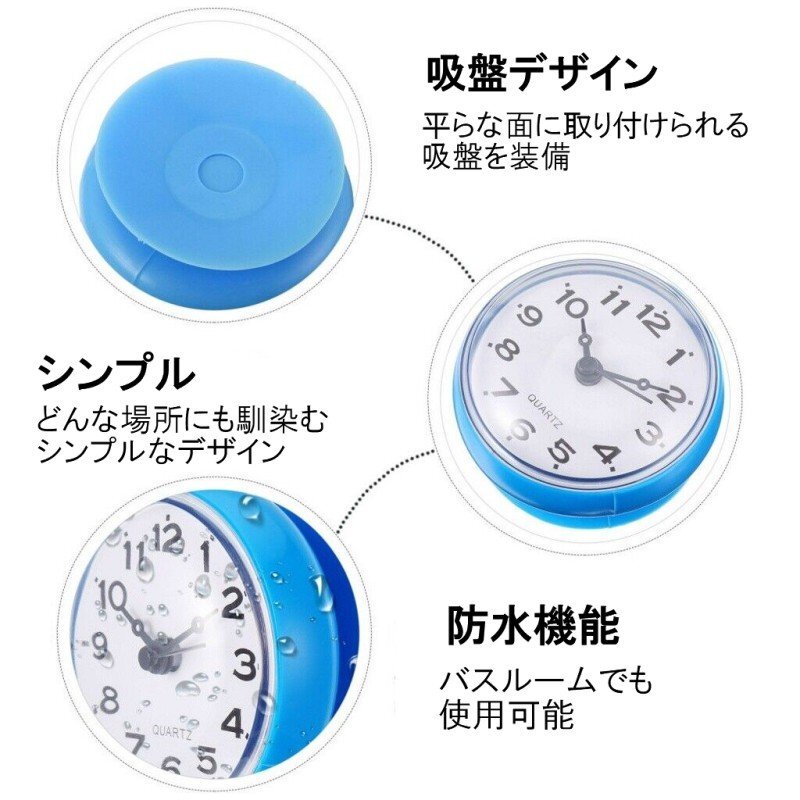 【vaps_5】シンプル 防水 お風呂時計 《ブルー》 吸盤式 ミニ アナログ クロック バスルーム 浴室 冷蔵庫 キッチン 送込
