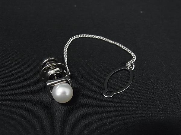 ■美品■ MIKIMOTO ミキモト 本真珠 アコヤ真珠 パール 約6mm ネクタイピン タイチェーン アクセサリー メンズ シルバー系 DK7836