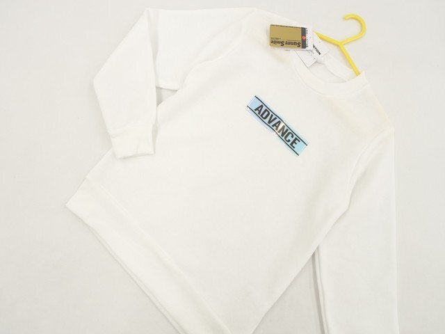 長袖 ラウンドネック 裏起毛トレーナー 140 ホワイト地 ブラック 英字