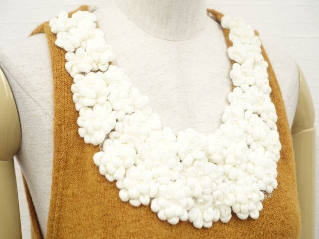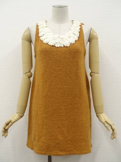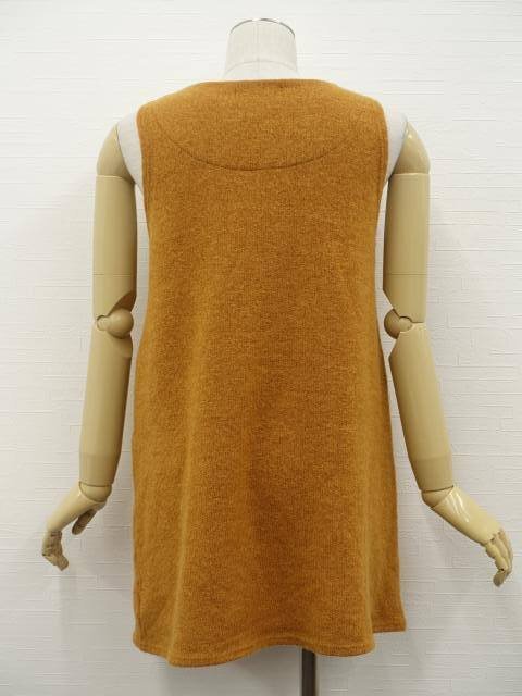 ひざ丈 ラウンドネック ニットチュニックワンピース キャラメルブラウン/オフホワイト