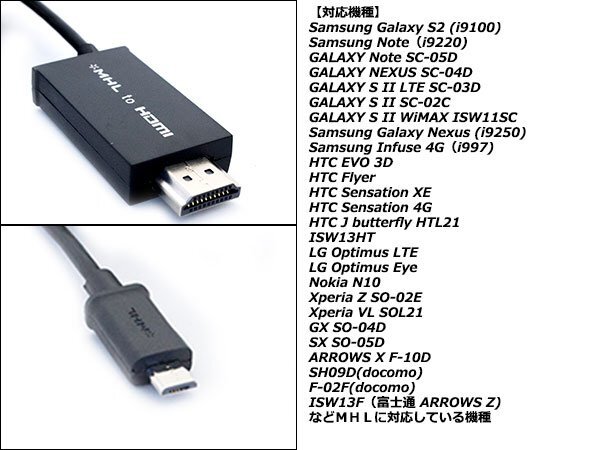 商 品 説 明MHL対応スマートフォンの映像を家庭用テレビ、液晶モニターに出力して、
