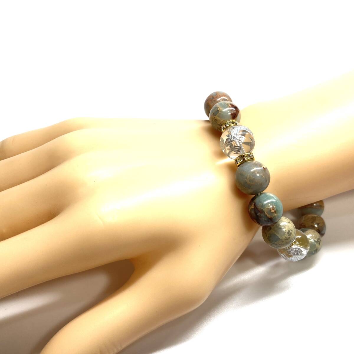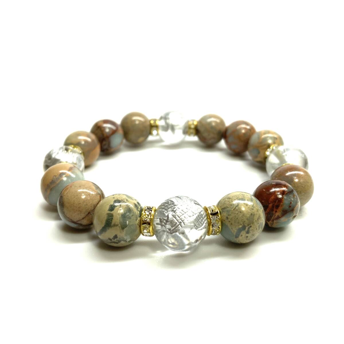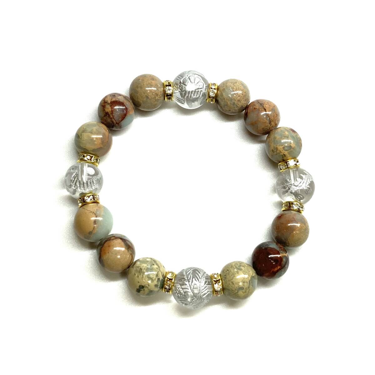 四神獣銀彫水晶×インプレッションストーン 12mm パワーストーン ブレスレット天然石 青龍 白虎 玄武 朱雀 運気上昇 お守り 四神相応 G