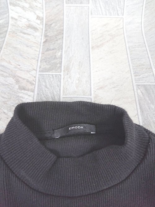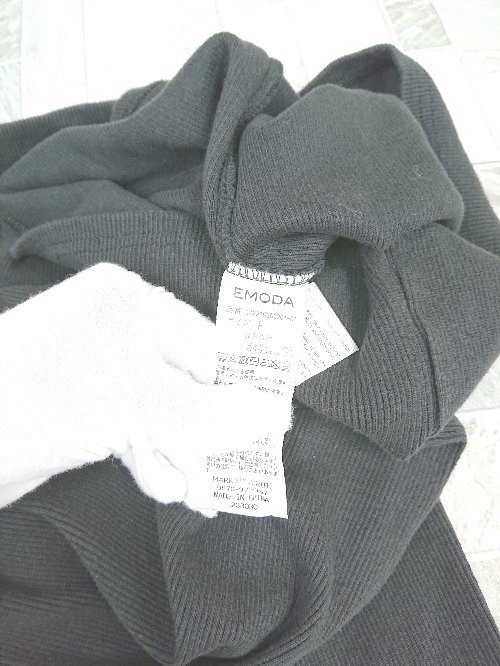 ◇ EMODA エモダ ハイネック リブ タイト 長袖 チュニック サイズF ブラック レディース P
