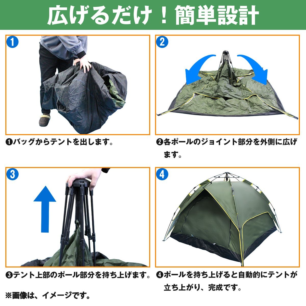 【新品即納】2WAY ワンタッチ式 ドーム型 テント 3人から4人用! キャンプ アウトドア ワンタッチテント ドームテント グリーン 緑 簡易