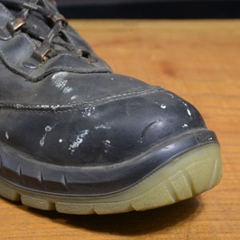 靴の表面はポリエステル、アウトソールは樹脂製となっています。