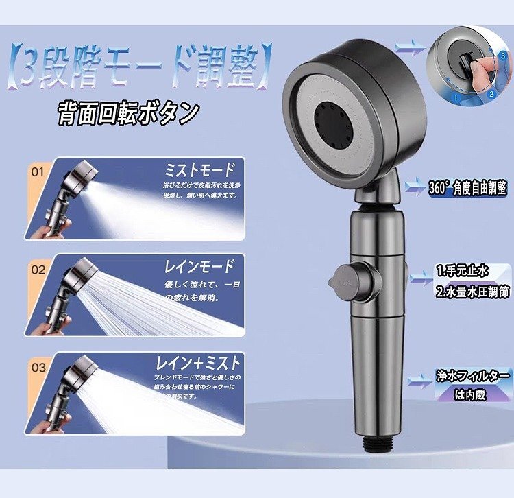 ▲ AH 【送料無料】 シャワーヘッド 節水 マイクロナノバブル 3段階モード 手元止水 未使用品