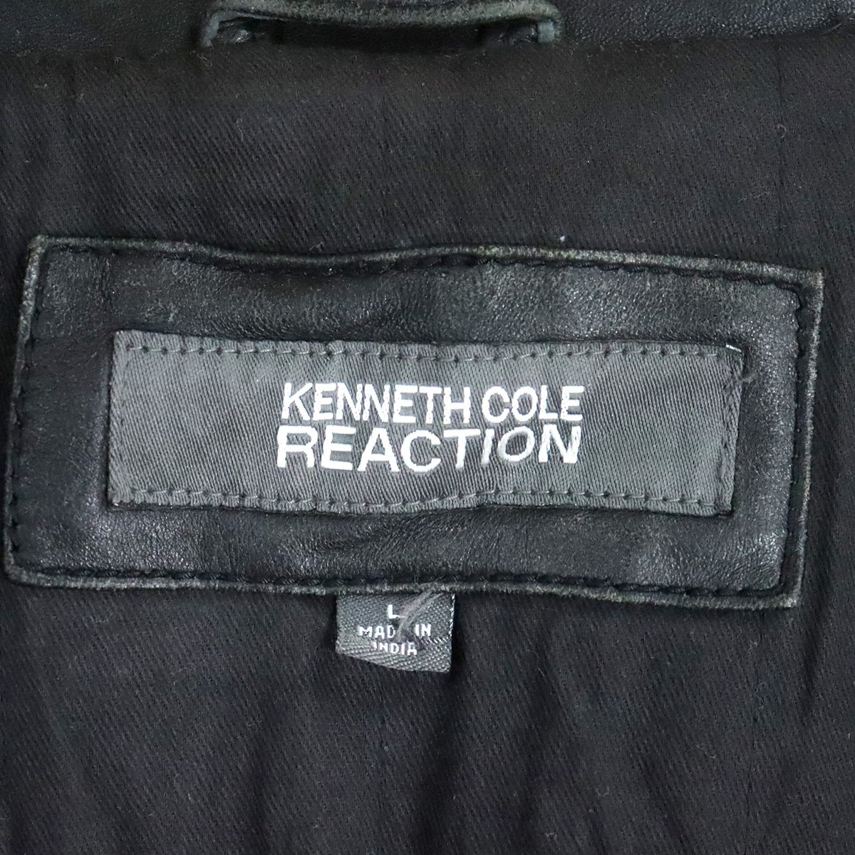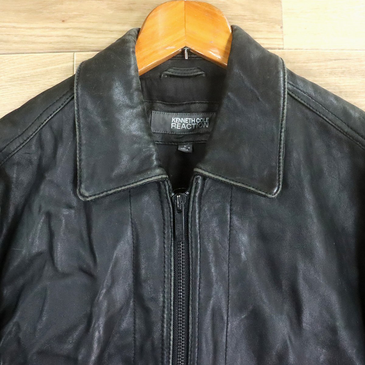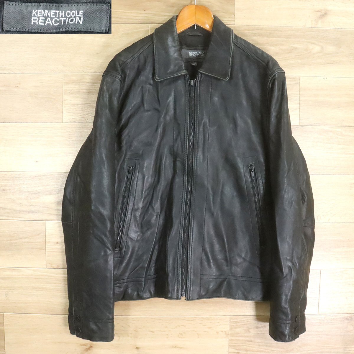 $2O/D12.2-5 KENNETH COLE REACTION レザージャケット 本革 革ジャン 皮ジャン レザーブルゾン メンズ ブラック系 Lサイズ
